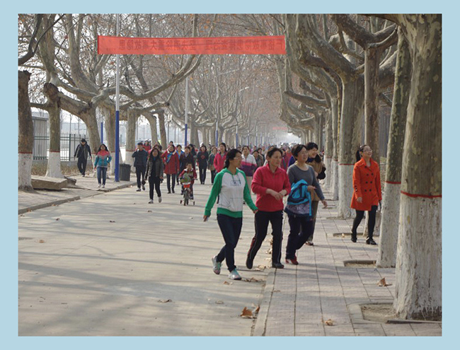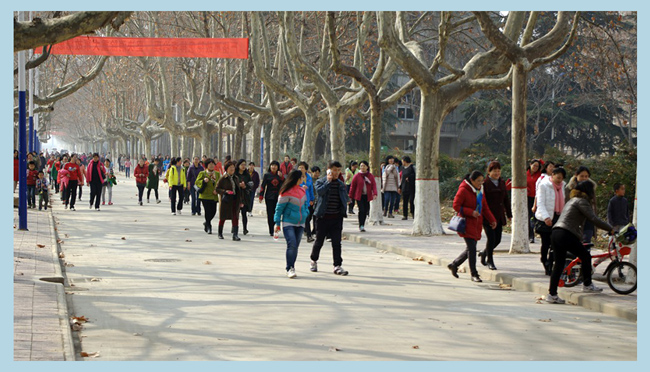 健步走活动的时间定为两小时,起于南校区国际交流中心楼前,途径科研楼、银杏路、牡丹园、农科楼、南校区西门、风雨操场,终点在南绣山活动中心广场,活动行程约为三公里。全程参加活动者均可获得纪念品。和往年的趣味运动会相比,健步走活动没有参加者技能条件的要求和比赛名次的限定,重在参与和娱乐。