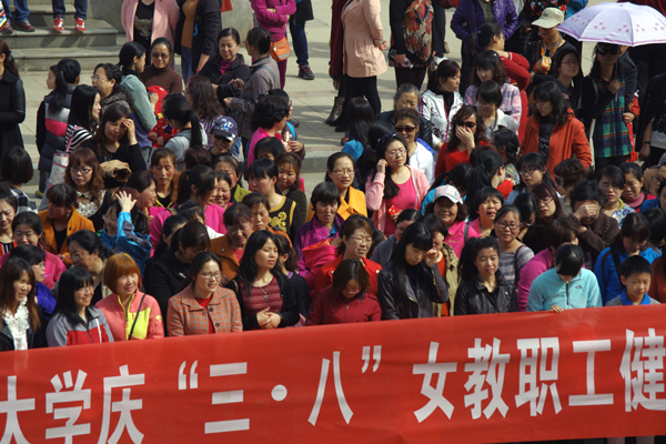 3月6日下午,我校庆“三八”女教职工健步走暨户外瑜伽活动在南校区校园内举行,校党委副书记徐养福出席并宣布活动开始,全校28个部门工会的1300余名女教职工参加了此次活动,其中40余人参加了瑜伽活动。
