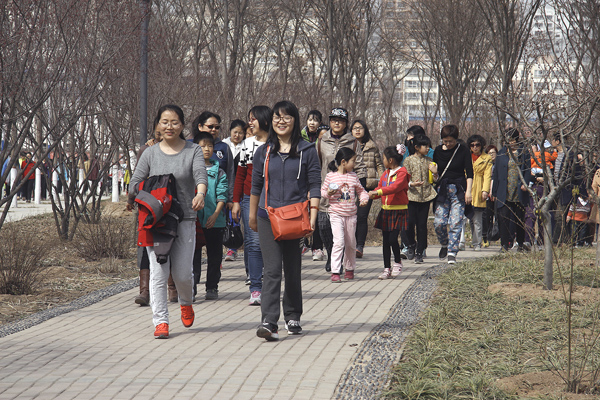 健步走活动定为两小时,从南校区国际交流中心楼前出发,途经科研楼、银杏路、牡丹园、农科楼、南校区西门、风雨操场,终点在南绣山活动中心广场,行程约为三公里。徐养福书记和校工会、各部门工会负责人与女职工们参加活动。不少女教职工与孩子、家属共同参加,为春意盎然的校园染就一道美丽春光画面。这幅校园春景图,烘托出我学的生机活力与阳光健康。